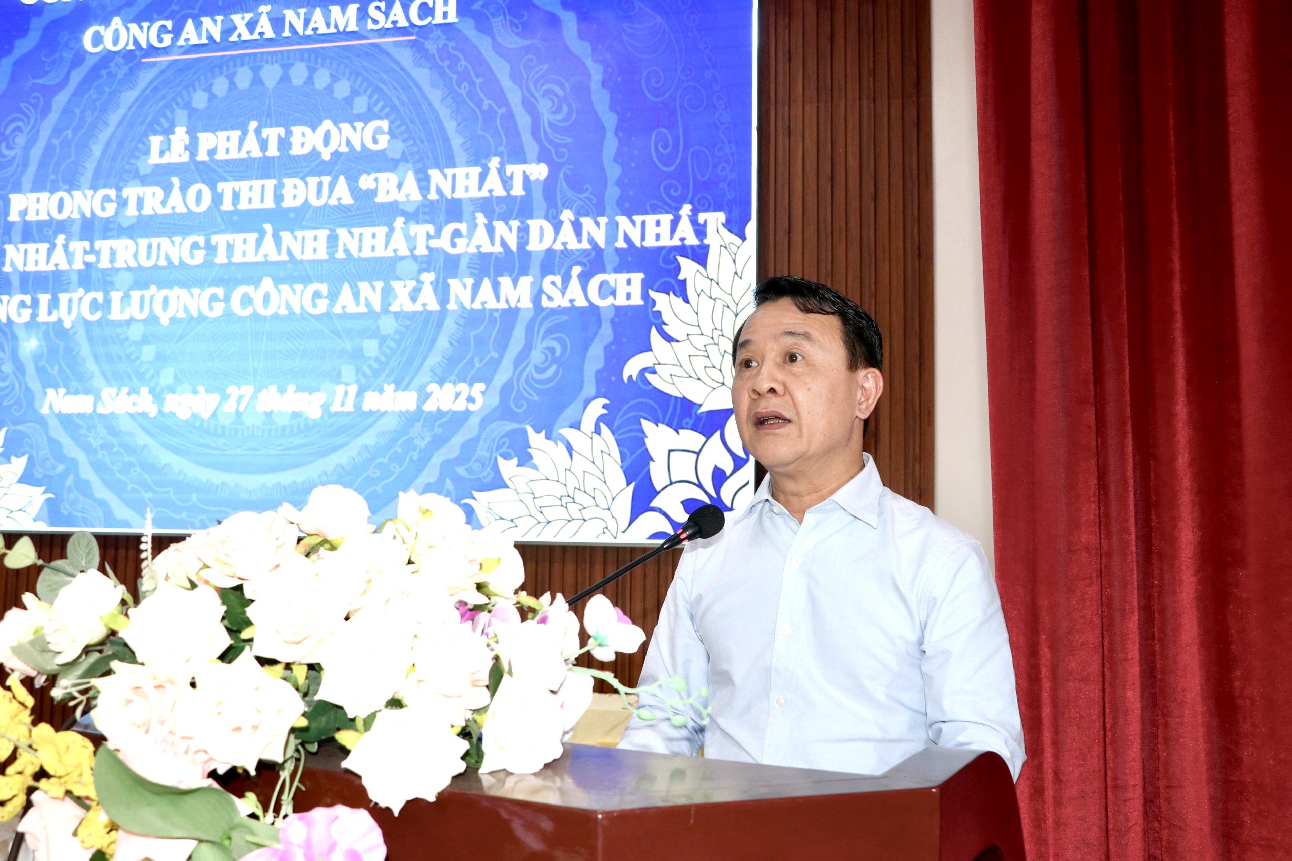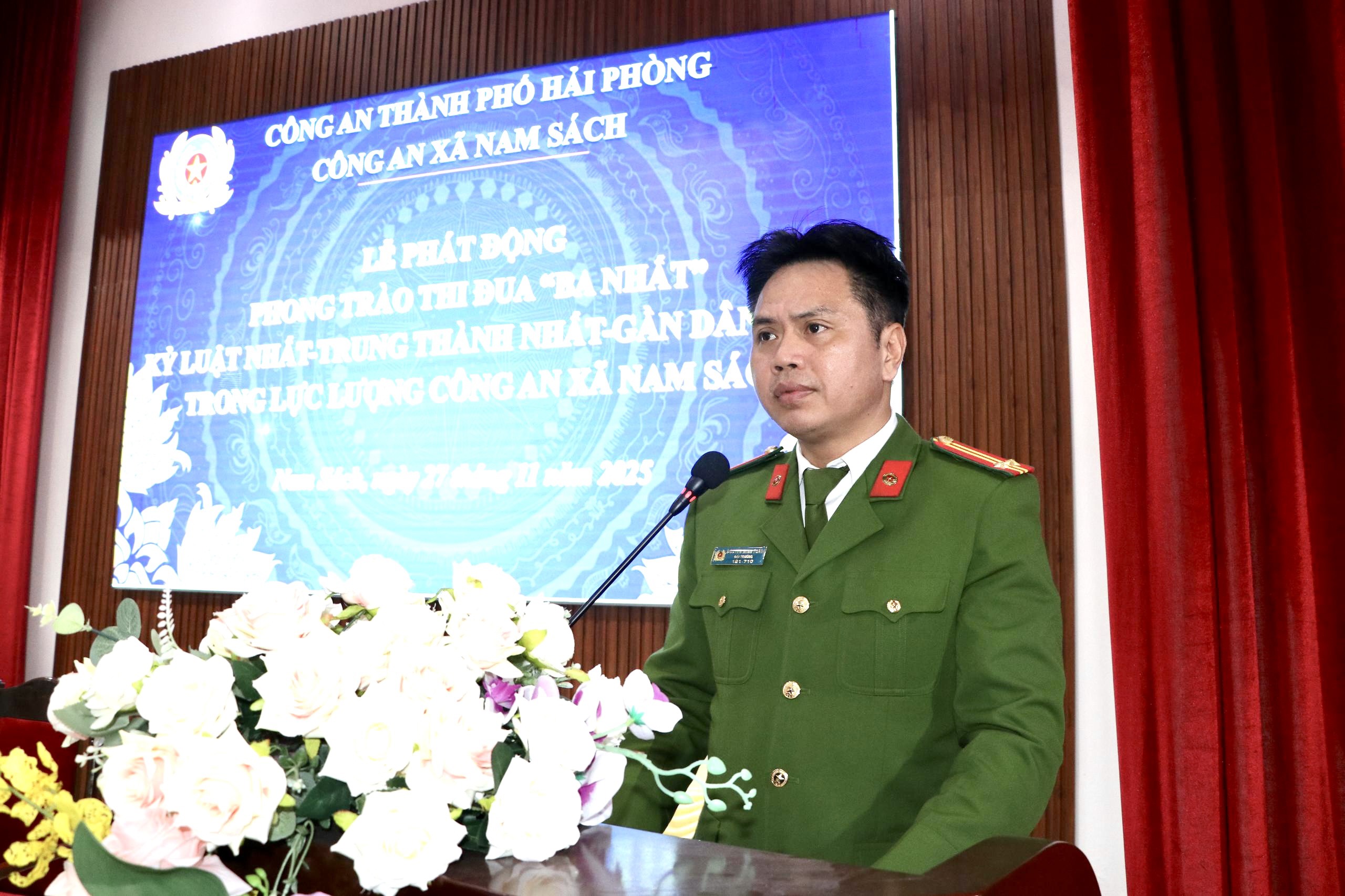 Phát biểu phát động phong trào, Trung tá Nguyễn Minh Tuấn - Trưởng Công an xã nhấn mạnh: phong trào “Ba nhất” là nhiệm vụ trọng tâm của lực lượng Công an xã Nam Sách; yêu cầu mỗi cán bộ, chiến sĩ nêu cao tinh thần trách nhiệm, kỷ cương, gương mẫu, nói đi đôi với làm; gần dân, sát dân và dựa vào dân để hoàn thành tốt mọi nhiệm vụ.
