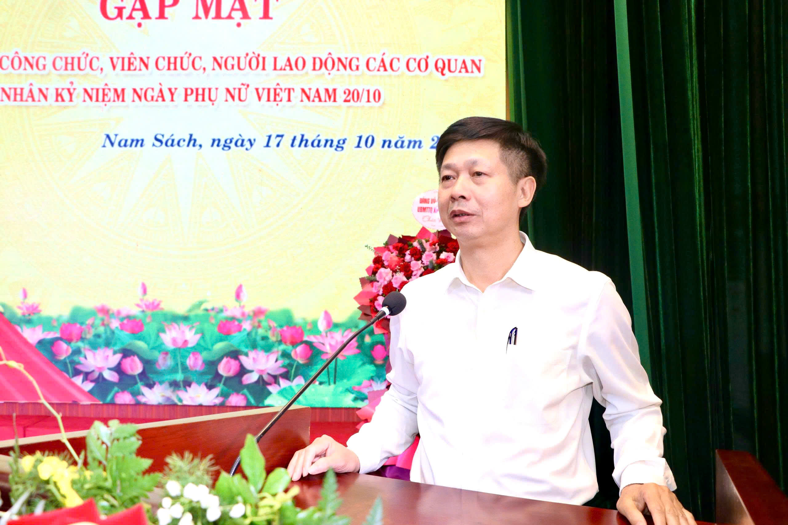 Nhân dịp kỷ niệm 15 năm Ngày Phụ nữ Việt Nam, đồng chí Bí thư Đảng ủy gửi lời chúc mừng tốt đẹp nhất tới toàn thể chị em phụ nữ xã Nam Sách, mong rằng mỗi người sẽ tiếp tục phát huy phẩm chất “Tự tin – Tự trọng – Trung hậu – Đảm đang”, xây dựng hình ảnh người phụ nữ Nam Sách năng động, sáng tạo, góp phần quan trọng vào sự phát triển bền vững của địa phương.