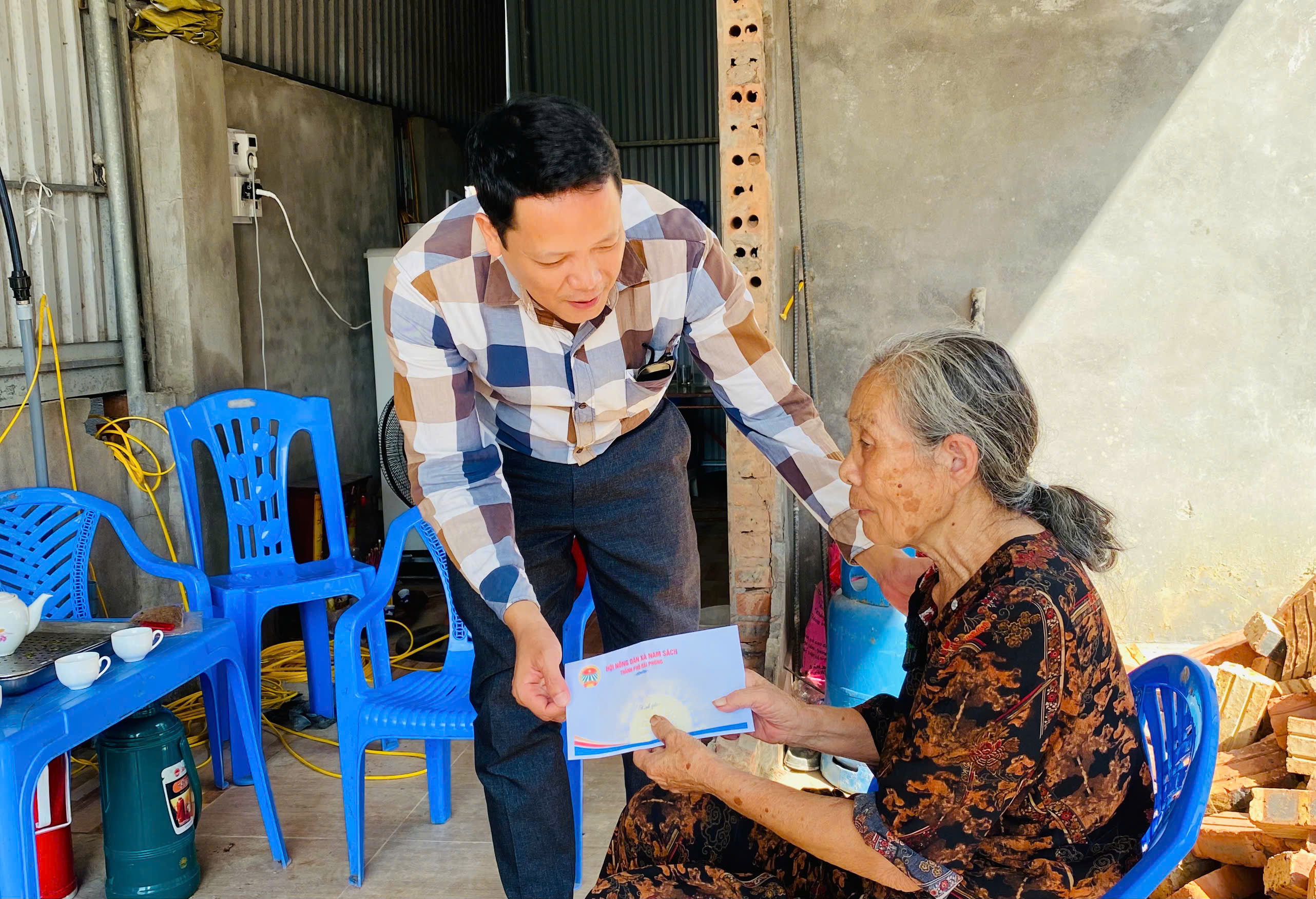 Lãnh đạo Hội Nông dân xã trao quà cho hội viên có hoàn cảnh khó khăn