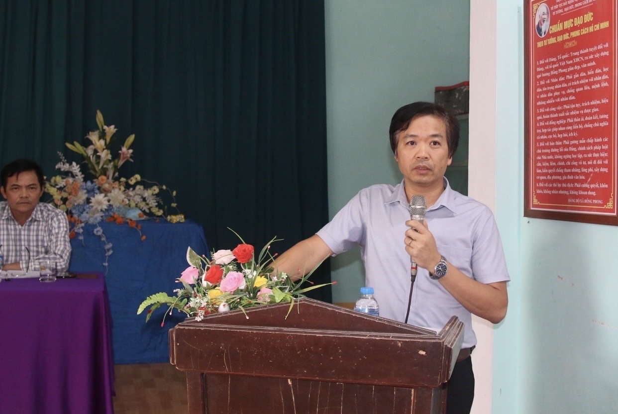 Đồng chí Hồ Ngọc Lâm - Bí thư Đảng ủy, Chủ tịch HĐND xã phát biểu Ttại buổi sinh hoạt chi bộ thôn Nam Khê