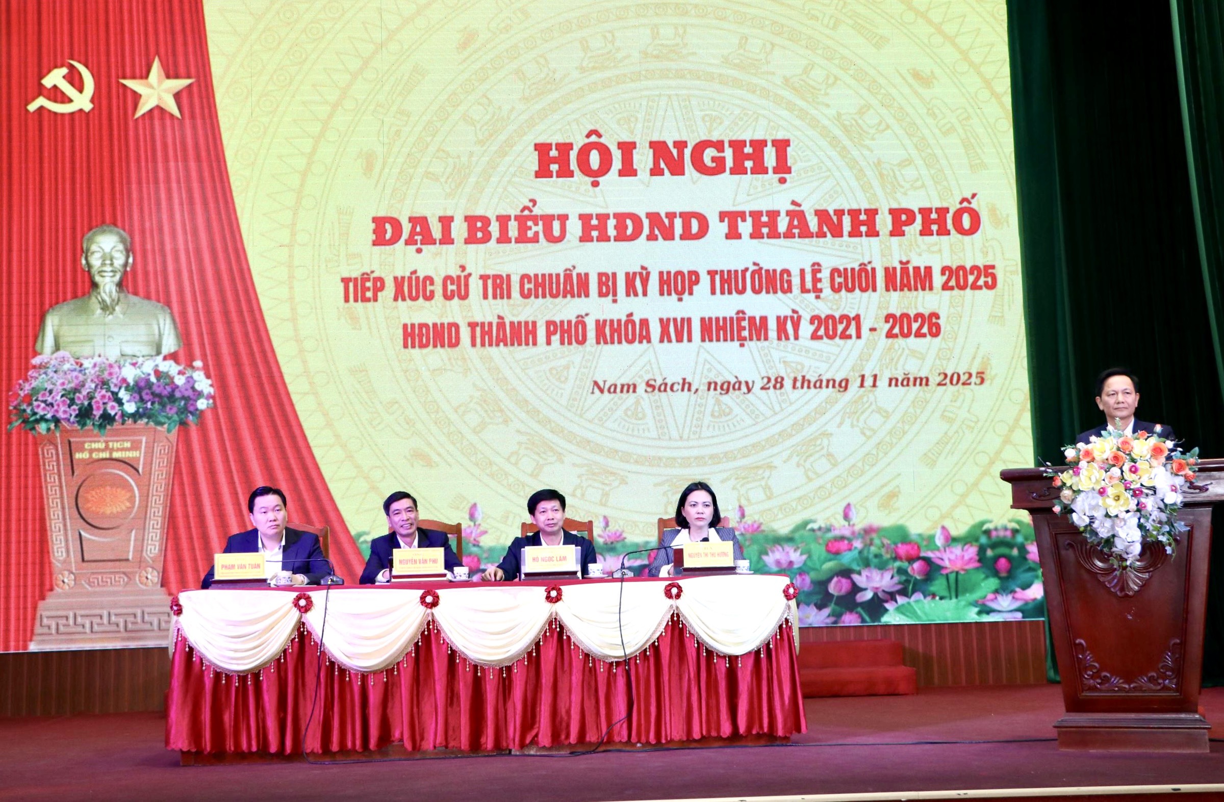 Dự hội nghị có ông Nguyễn Văn Phú – Ủy viên Ban Thường vụ Thành ủy, Hiệu trưởng Trường Chính trị Tô Hiệu; ông Hồ Ngọc Lâm – Bí thư Đảng ủy, Chủ tịch HĐND xã Nam Sách; bà Nguyễn Thị Thu Hương – Bí thư Đảng ủy xã Thái Tân; ông Phạm Văn Tuấn – Tổng Giám đốc Công ty TNHH An Phát công nghệ cao; đại diện các cơ quan thành phố, lãnh đạo xã và trên 50 cử tri đến từ 25 thôn trên địa bàn.