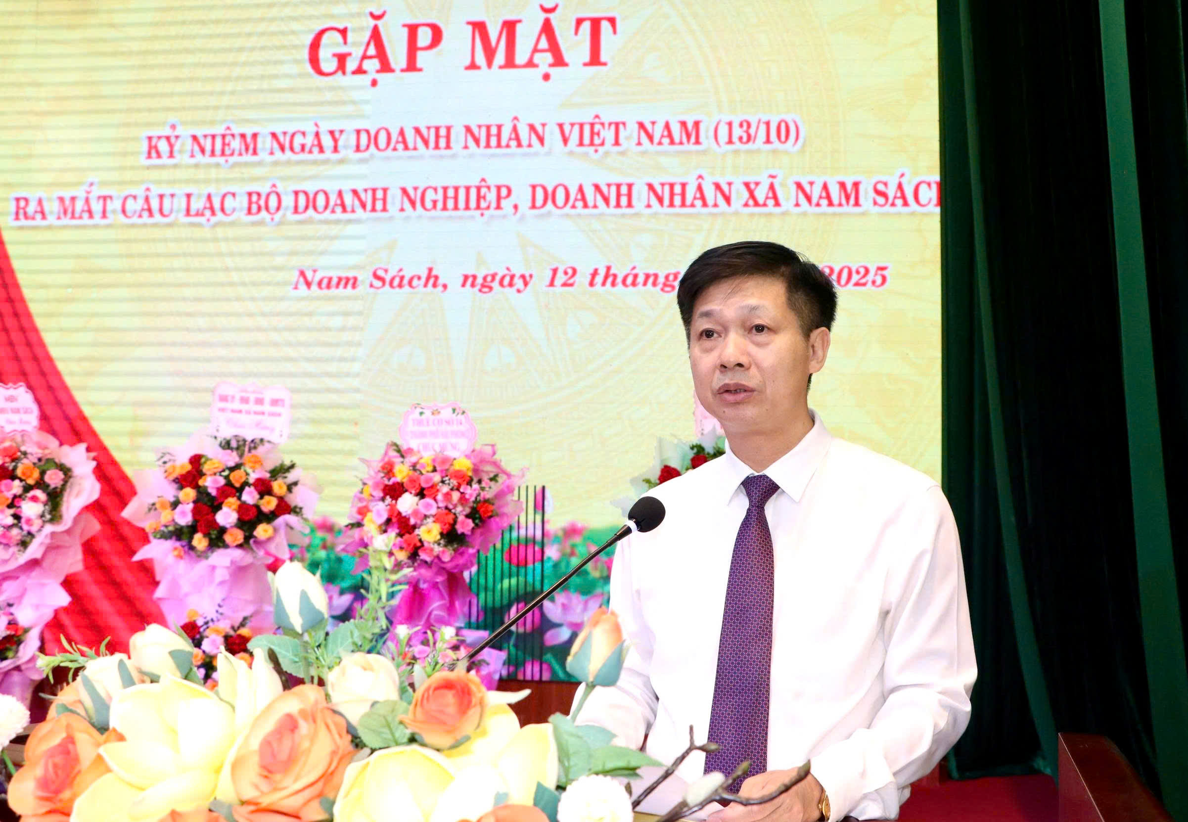 Phát biểu tại buổi gặp mặt, đồng chí Hồ Ngọc Lâm Bí thư Đảng ủy, Chủ tịch HĐND xã gửi lời chúc mừng tới đội ngũ doanh nhân nhân Ngày Doanh nhân Việt Nam 13/10, đồng thời ghi nhận và biểu dương những đóng góp quan trọng của các doanh nghiệp, hộ kinh doanh đối với sự phát triển kinh tế - xã hội của xã. Đồng chí khẳng định: “Đội ngũ doanh nghiệp, doanh nhân xã Nam Sách là lực lượng tiên phong trong sản xuất, kinh doanh, góp phần quan trọng trong chuyển dịch cơ cấu kinh tế, tạo việc làm, nâng cao thu nhập cho người dân và thúc đẩy sự phát triển chung của xã nhà.”