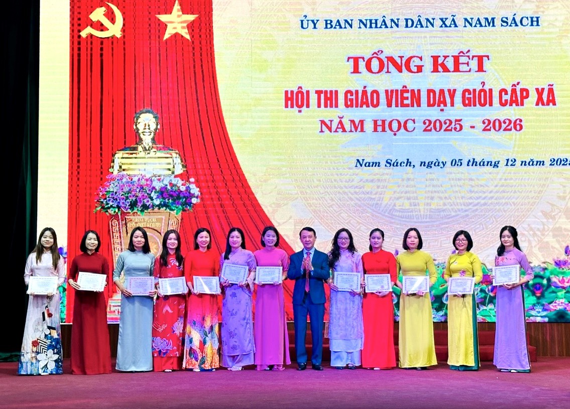 Hội thi giáo viên dạy giỏi xã Nam Sách năm học 2025–2026 được tổ chức từ ngày 21/11 đến 01/12/2025. Đây là Hội thi đầu tiên triển khai dưới mô hình chính quyền địa phương 2 cấp, mang dấu mốc quan trọng đối với công tác giáo dục của xã. Hội thi thu hút 41 giáo viên tham gia đến từ 12 trường của ba cấp học.