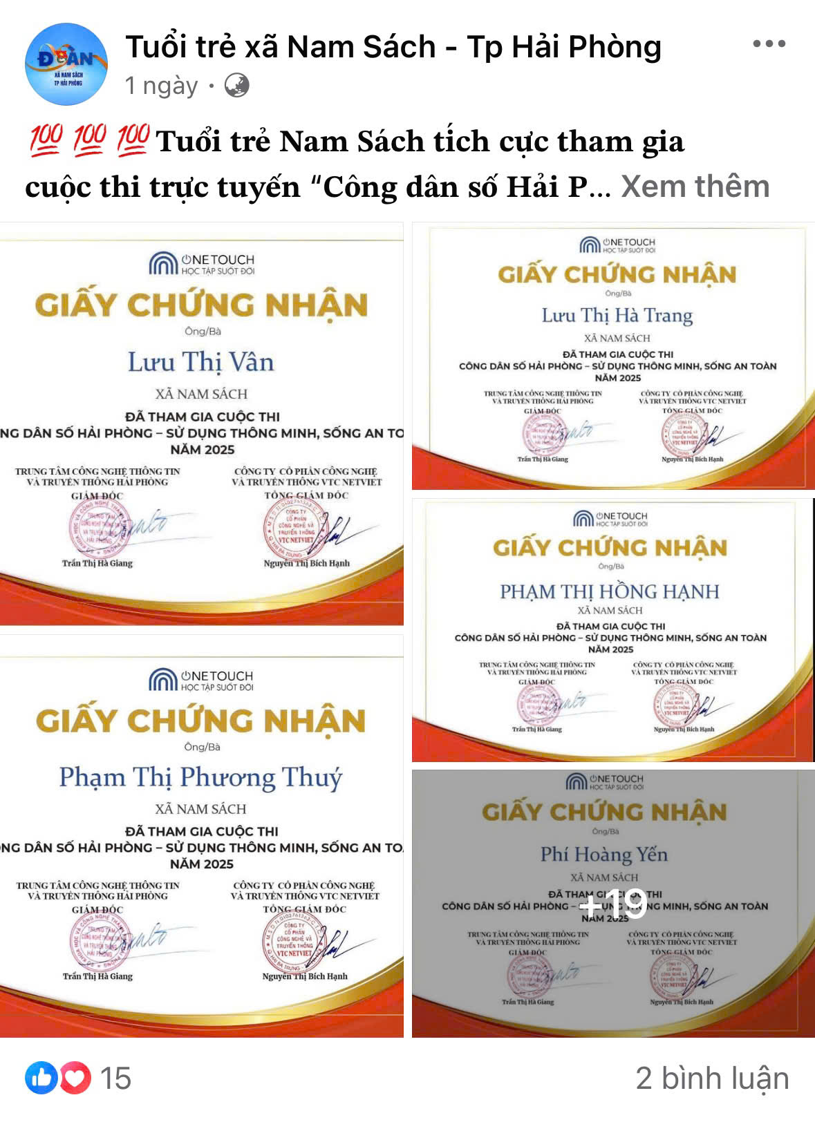 Đoàn xã và các chi đoàn triển khai tuyên truyền trên fanpage, nhóm mạng xã hội; tổ chức hướng dẫn đăng ký dự thi, tạo không khí thi đua sôi nổi, thiết thực. Với quyết tâm 100% đoàn viên chi đoàn tham gia, tuổi trẻ Nam Sách phấn đấu đạt thứ hạng cao, lan tỏa kỹ năng số an toàn đến cộng đồng.