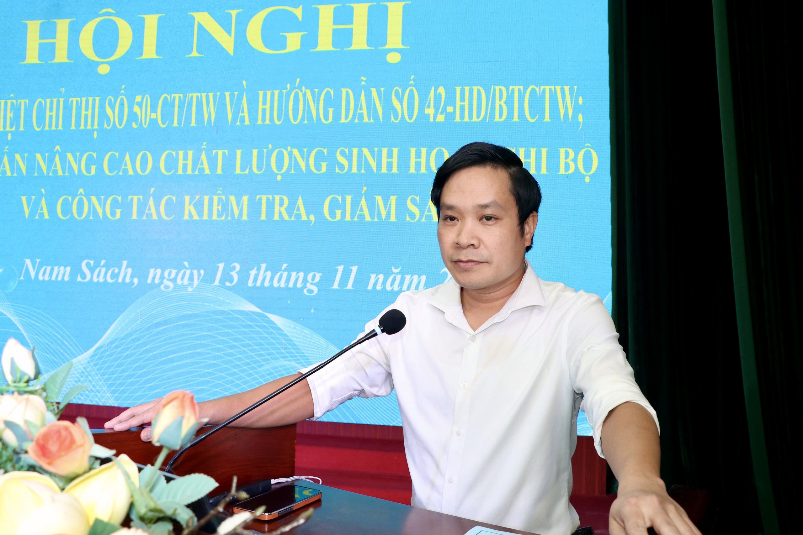 Đảng ủy xã Nam Sách tổ chức hội nghị quán triệt Chỉ thị số 50-CT/TW, Hướng dẫn số 42-HD/BTCTW và tập huấn nâng cao chất lượng sinh hoạt chi bộ, công tác kiểm tra, giám sát