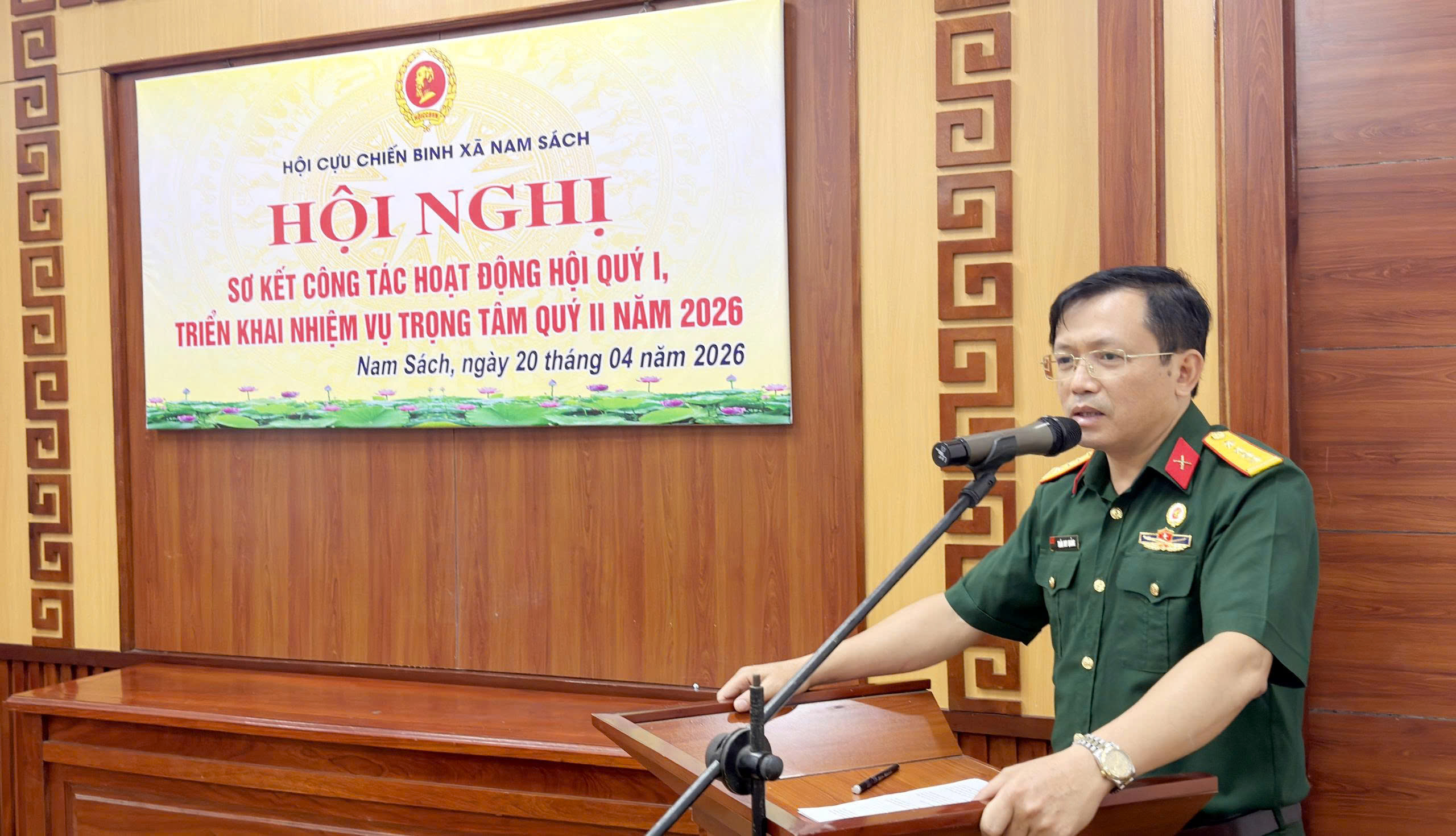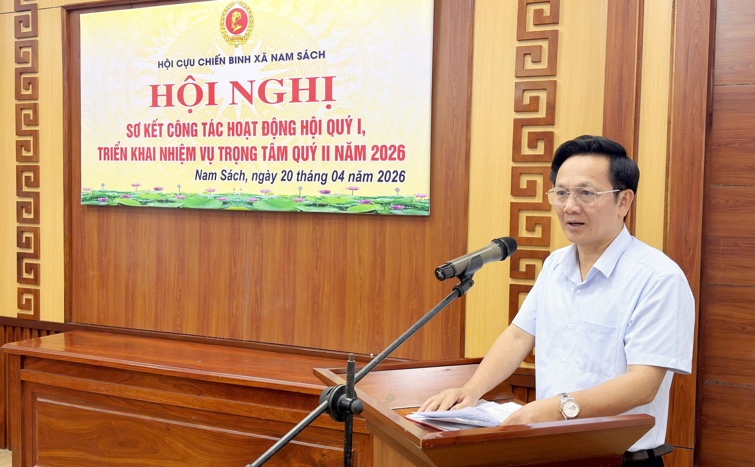 Chiều 20/4, Hội Cựu chiến binh (CCB) xã Nam Sách tổ chức hội nghị sơ kết công tác quý I, triển khai nhiệm vụ quý II năm 2026. Dự hội nghị có đồng chí Nguyễn Văn Mạnh – Phó Bí thư Thường trực Đảng ủy xã; đồng chí Lê Văn Trăm – Ủy viên Ban Thường vụ Đảng ủy, Chủ tịch Ủy ban MTTQ Việt Nam xã cùng đông đảo cán bộ, hội viên.