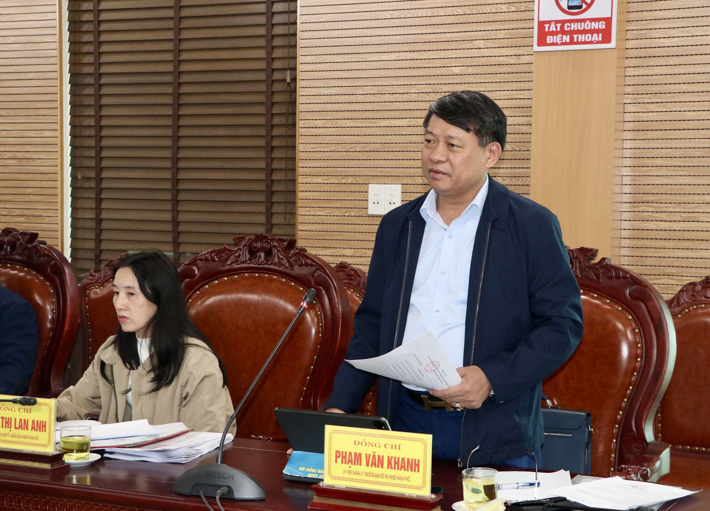 Đồng chí Phạm Văn Khanh, Ủy viên Thành ủy, Trưởng Ban đô thị HĐND thành phố phát biểu