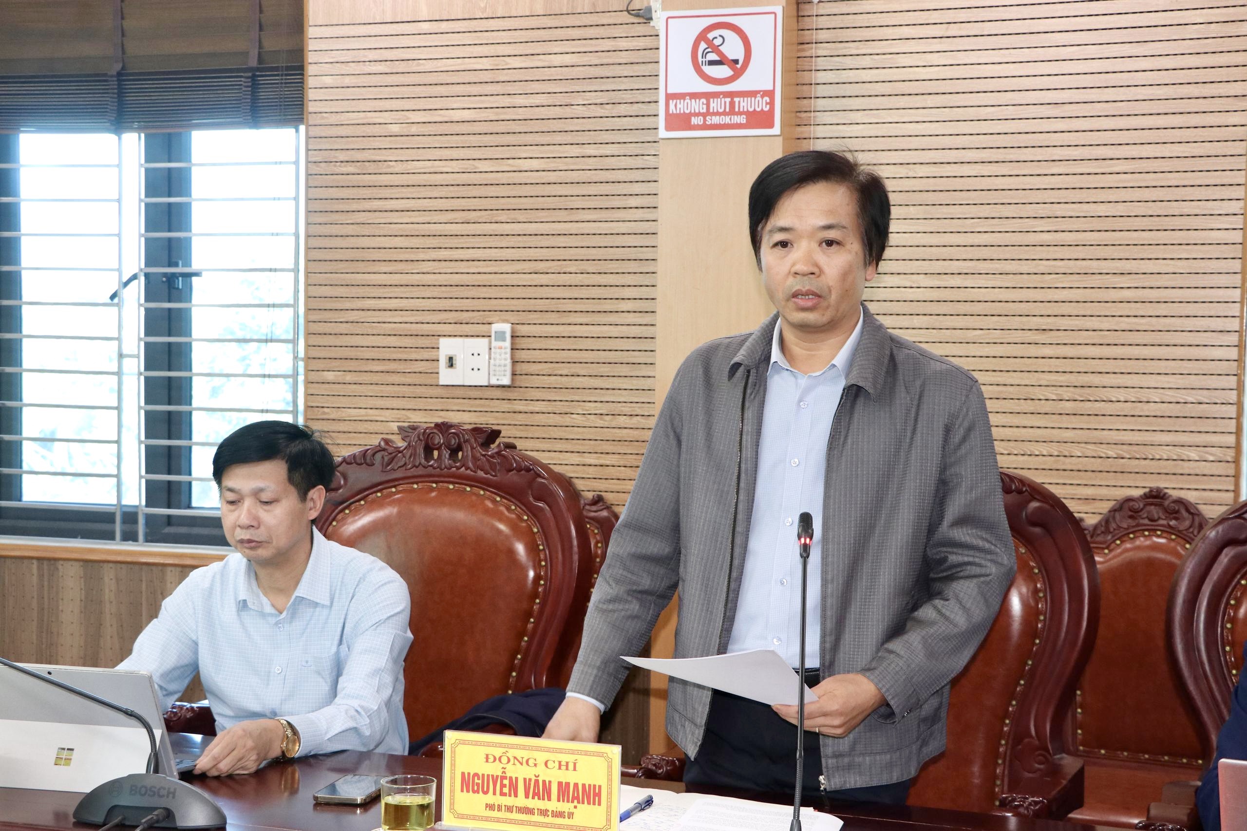 Tiếp đoàn làm việc có đồng chí Hồ Ngọc Lâm – Bí thư Đảng ủy, Chủ tịch HĐND xã; Nguyễn Văn Mạnh – Phó Bí thư Thường trực Đảng ủy; Phùng Văn Diện – Phó Bí thư Đảng ủy, Chủ tịch UBND xã; các đồng chí là lãnh đạo HĐND, UBND, Chủ tịch Ủy ban MTTQ xã và lãnh đạo các cơ quan, đơn vị xã.