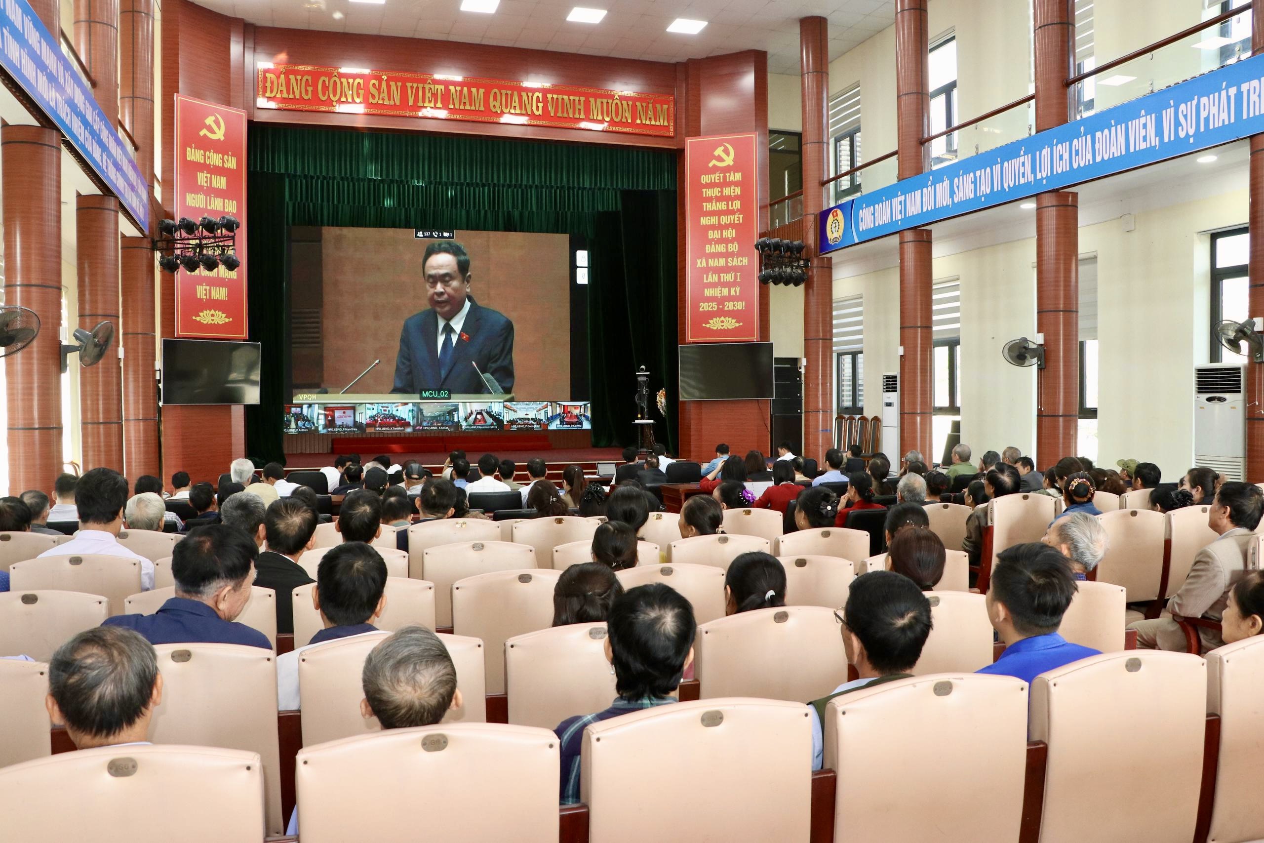 Tại điểm cầu xã Nam Sách, tham dự có các đồng chí: Hồ Ngọc Lâm – Bí thư Đảng ủy, Chủ tịch HĐND xã; Nguyễn Văn Mạnh – Phó Bí thư Thường trực Đảng ủy; Phùng Văn Diện – Phó Bí thư Đảng ủy, Chủ tịch UBND xã; cùng các đồng chí trong Ban Chỉ đạo công tác bầu cử đại biểu Quốc hội khóa XVI và HĐND các cấp nhiệm kỳ 2026 – 2031; Thường trực HĐND, lãnh đạo UBND, Ủy viên Ban Chấp hành Đảng bộ xã; Thường trực Ủy ban MTTQ; đại diện các ban, ngành, Bí thư Chi bộ, Trưởng thôn và các đoàn thể trên địa bàn xã.