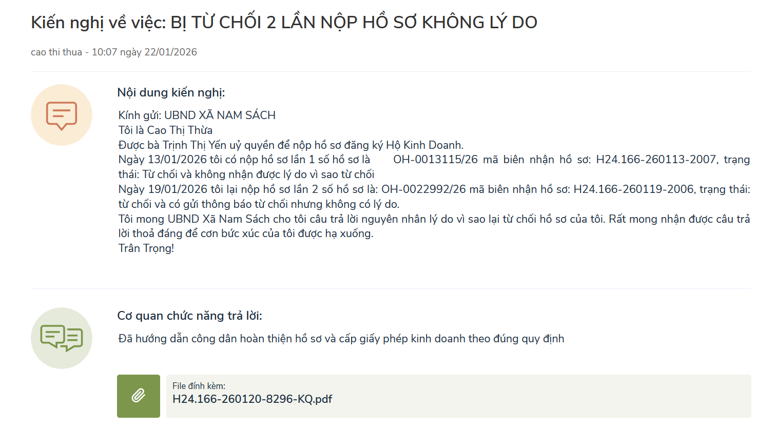 Công khai kết quả phản ánh kiến nghị - PAKN.20260122.0167