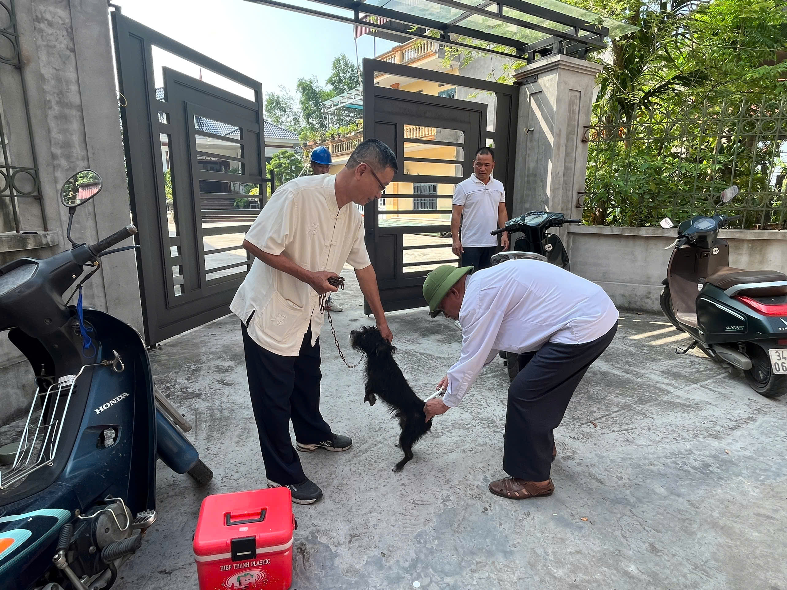 - Đưa vật nuôi đi tiêm phòng đúng lịch, phối hợp giữ chắc để cán bộ thú y tiêm nhanh, an toàn.