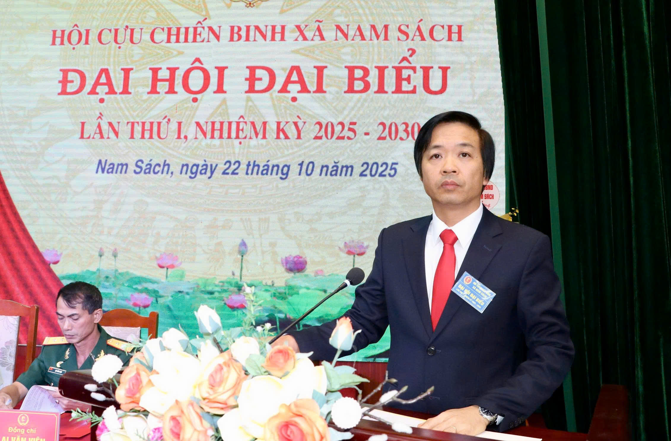 Sáng 22/10, tại Trung tâm Văn hóa xã, Đại hội đại biểu Hội Cựu chiến binh (CCB) xã Nam Sách lần thứ I, nhiệm kỳ 2025–2030 đã long trọng diễn ra. Đại hội vinh dự đón các đồng chí Vũ Hữu Kẹo, Phó Chủ tịch Hội CCB thành phố; Hồ Ngọc Lâm — Bí thư Đảng ủy, Chủ tịch HĐND xã; Nguyễn Văn Mạnh, Phó Bí thư Thường trực Đảng ủy xã về dự, chỉ đạo. Cùng dự có các đồng chí Thường vụ Đảng ủy; Thường trực HĐND, lãnh đạo UBND, Ủy ban MTTQ xã; Chủ tịch Hội CCB các xã Hợp Tiến, An Phú, Trần Phú, Thái Tân cùng lãnh đạo một số phòng, ban của xã và 119 đại biểu đại diện cho trên 1.700 hội viên CCB trong toàn xã về dự.