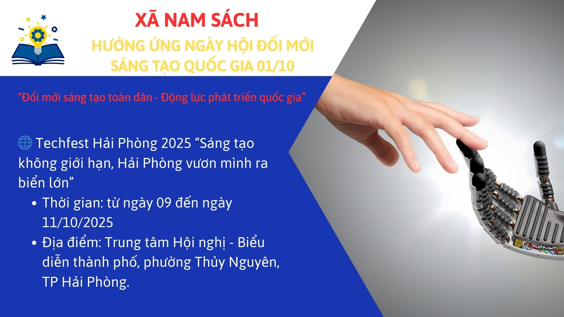 🔹 Khẩu hiệu tuyên truyền: “Nhiệt liệt chào mừng Ngày hội đổi mới sáng tạo quốc gia 01-10”