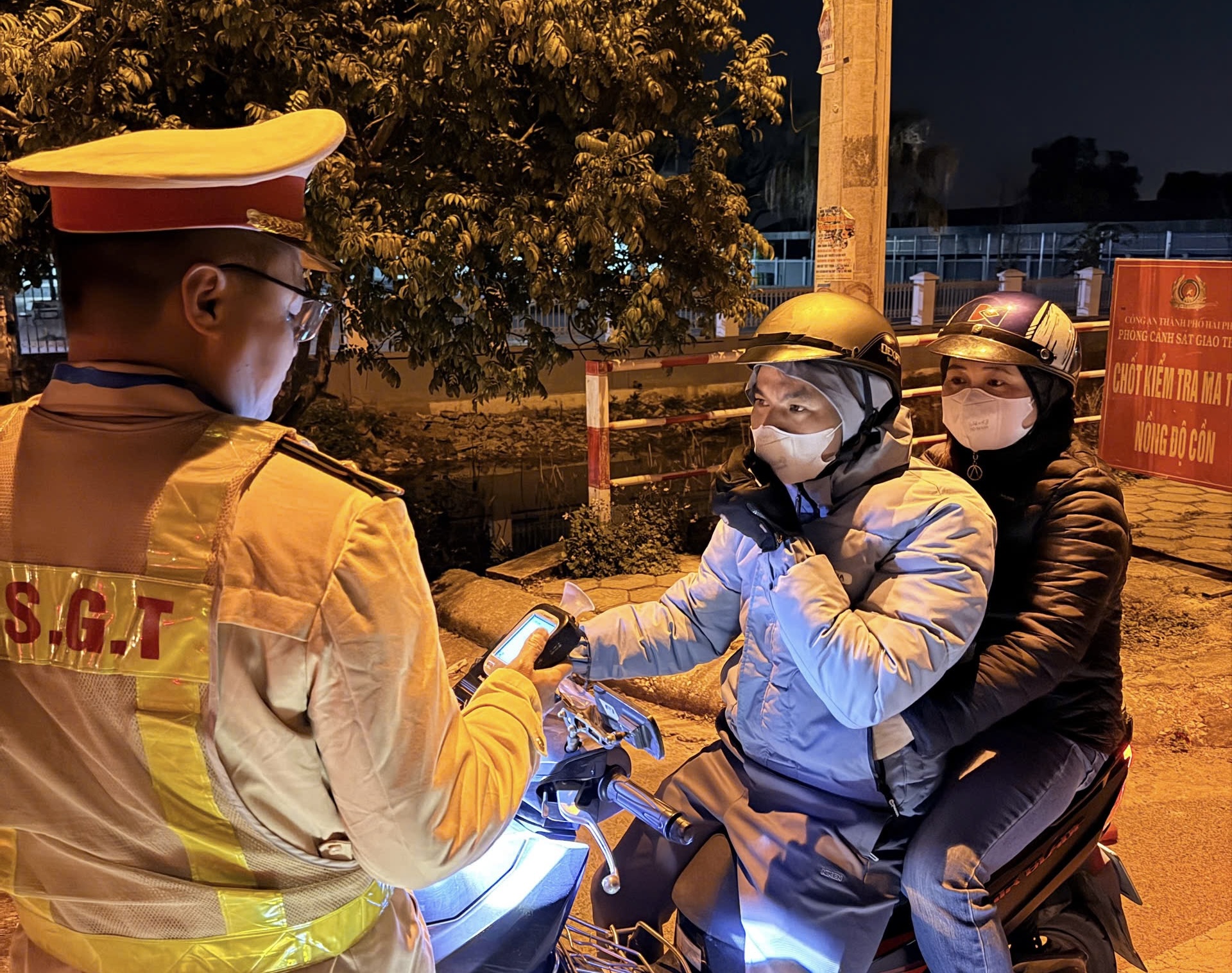 Lực lượng Công an xã Nam Sách phối hợp Công an thành phố tăng cường kiểm tra nồng độ cồn đối với người điều khiển phương tiện, nhằm phòng ngừa tai nạn giao thông và bảo đảm trật tự an toàn giao thông trên địa bàn.