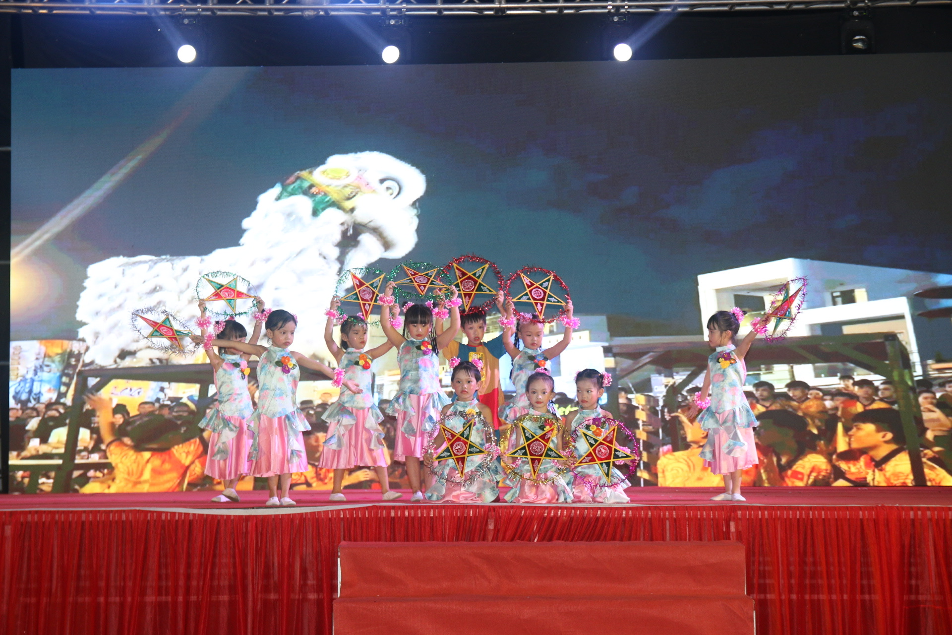Điểm nhấn của chương trình là màn bắn pháo hoa rực rỡ sắc màu cùng tiếng reo hò của các em nhỏ tạo nên một khung cảnh lung linh trong chương trình năm nay.