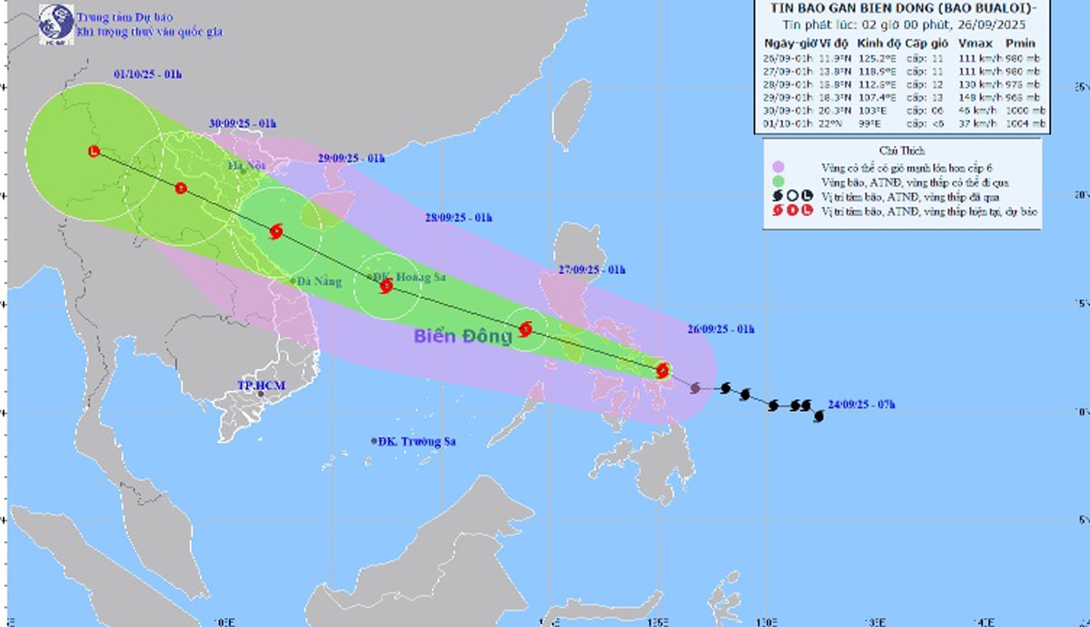 Bản đồ dự báo quỹ đạo và cường độ bão Bualoi phát lúc 2 giờ ngày 26/9